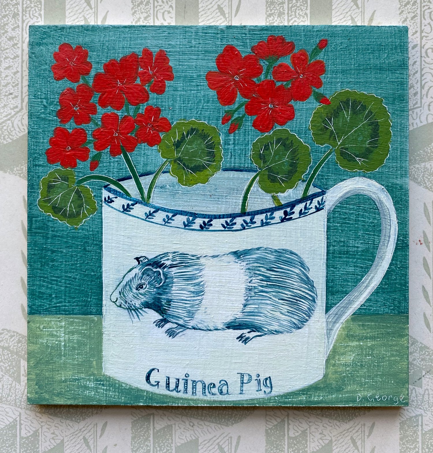 A new small painting on gessoed board inspired by a vintage illustration of a Guinea Pig.