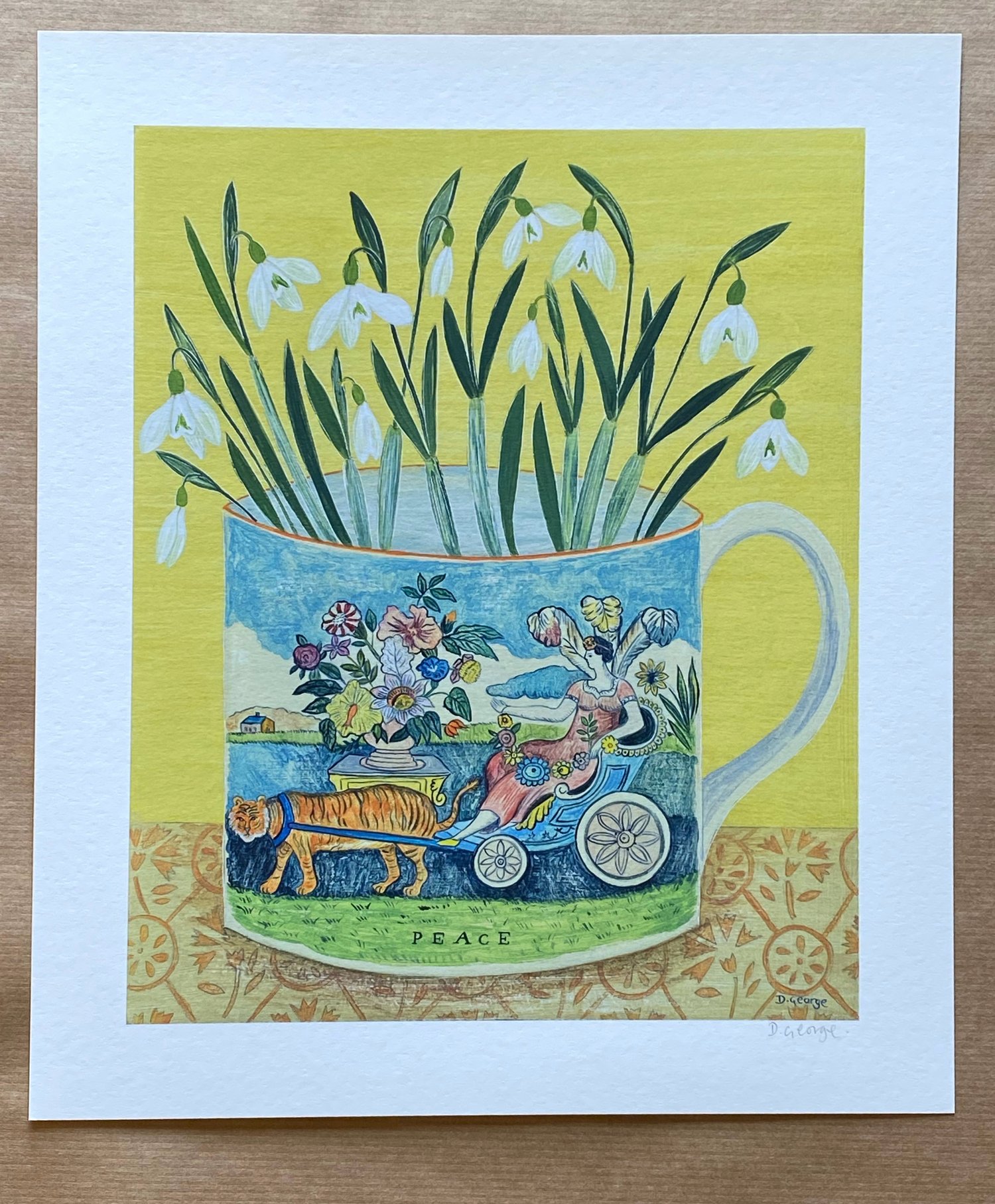 Image of The Hare cup and Snowdrops print Image of The Hare cup and Snowdrops print