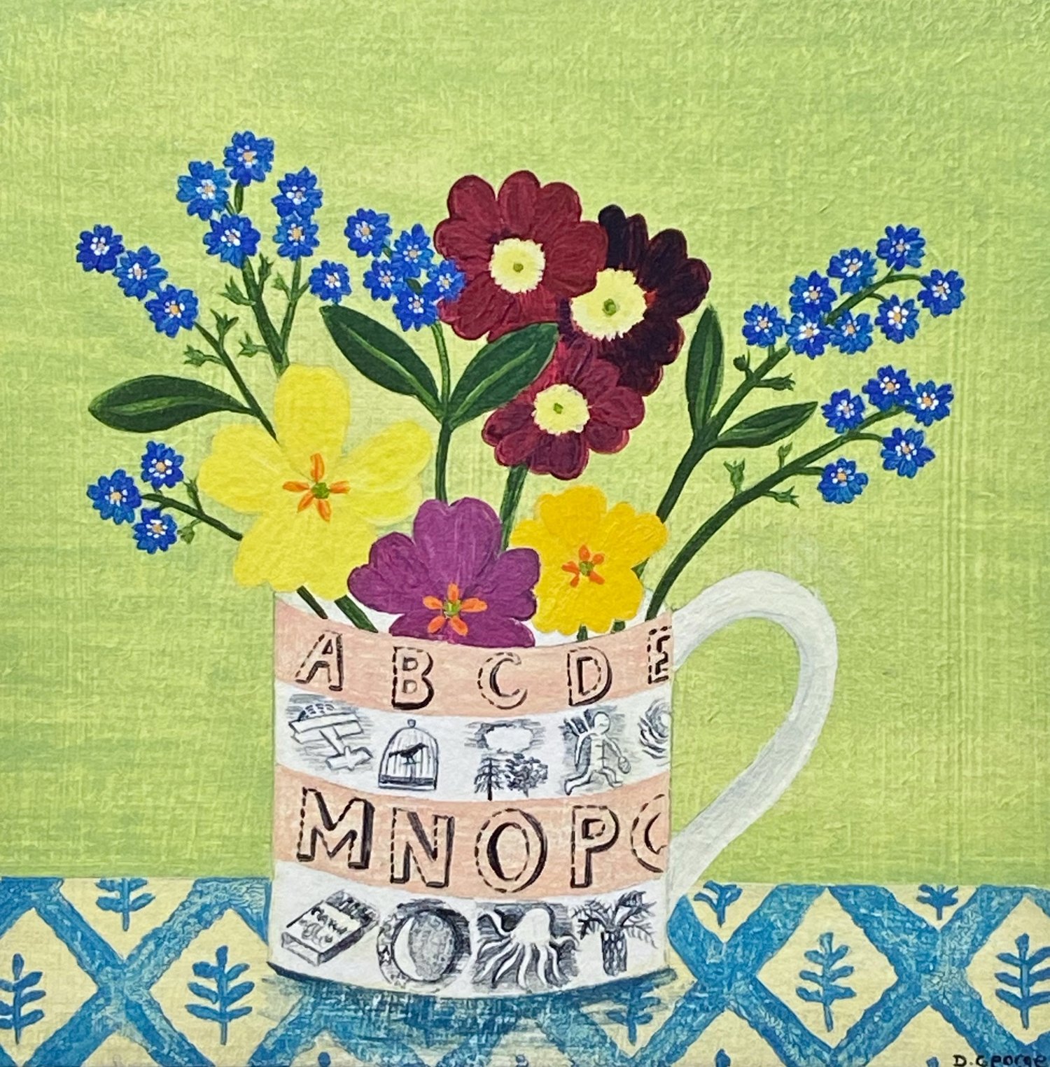 'Pink alphabet cup' A Giclee print, printed on high quality Hahnemuhle watercolour paper. The image area measures 15x 15 cm.