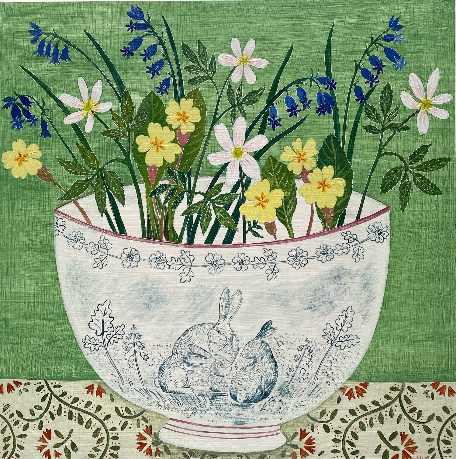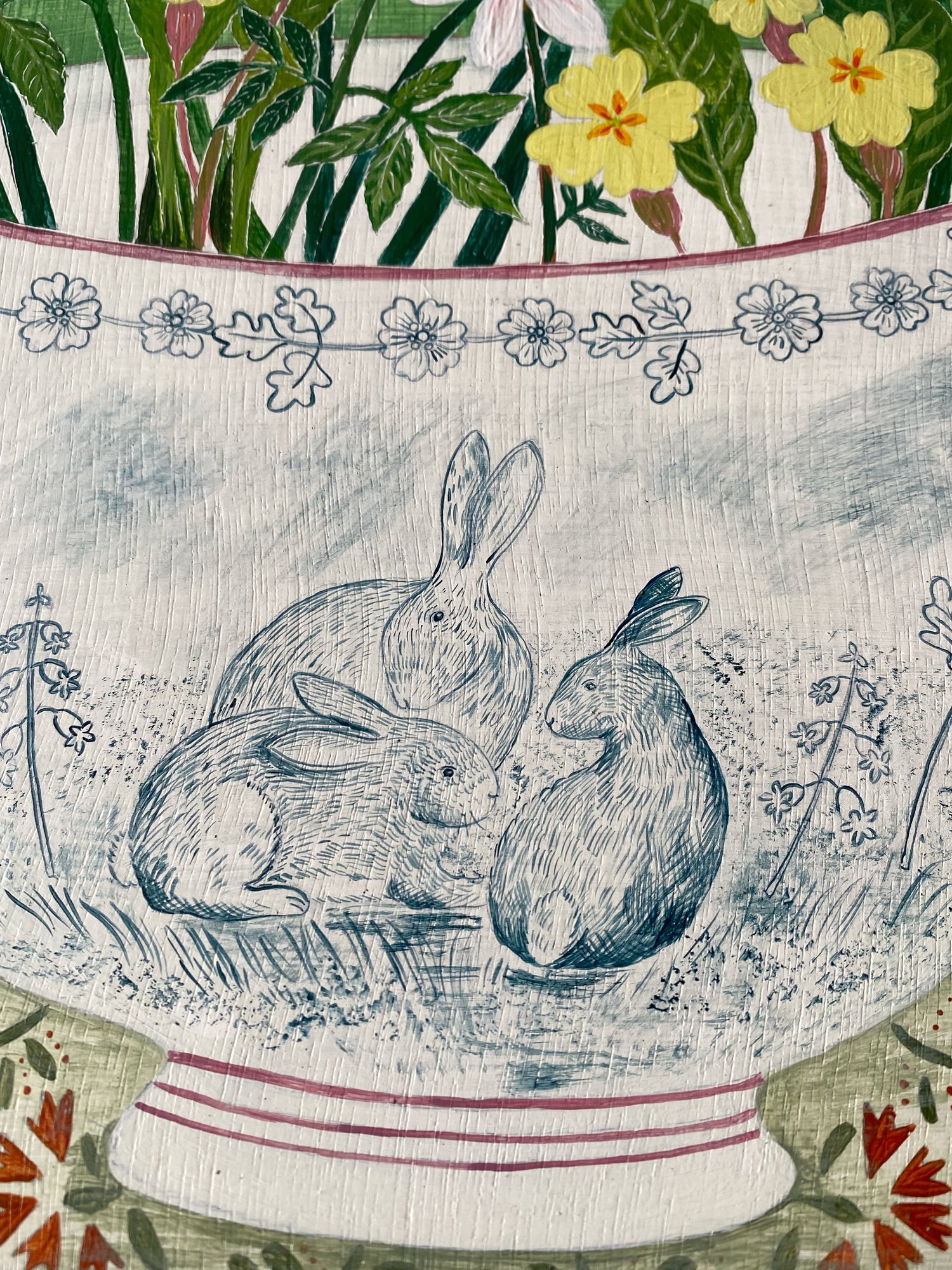 A new painting on gessoed board inspired by a vintage nurseryware illustration by Emma Bridgewater.