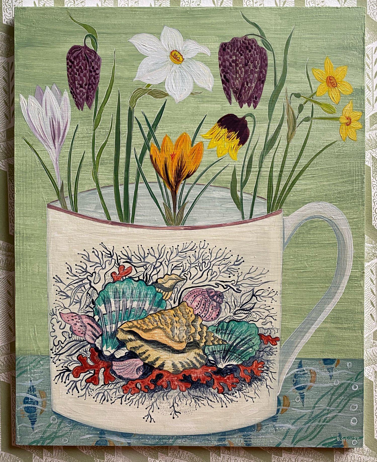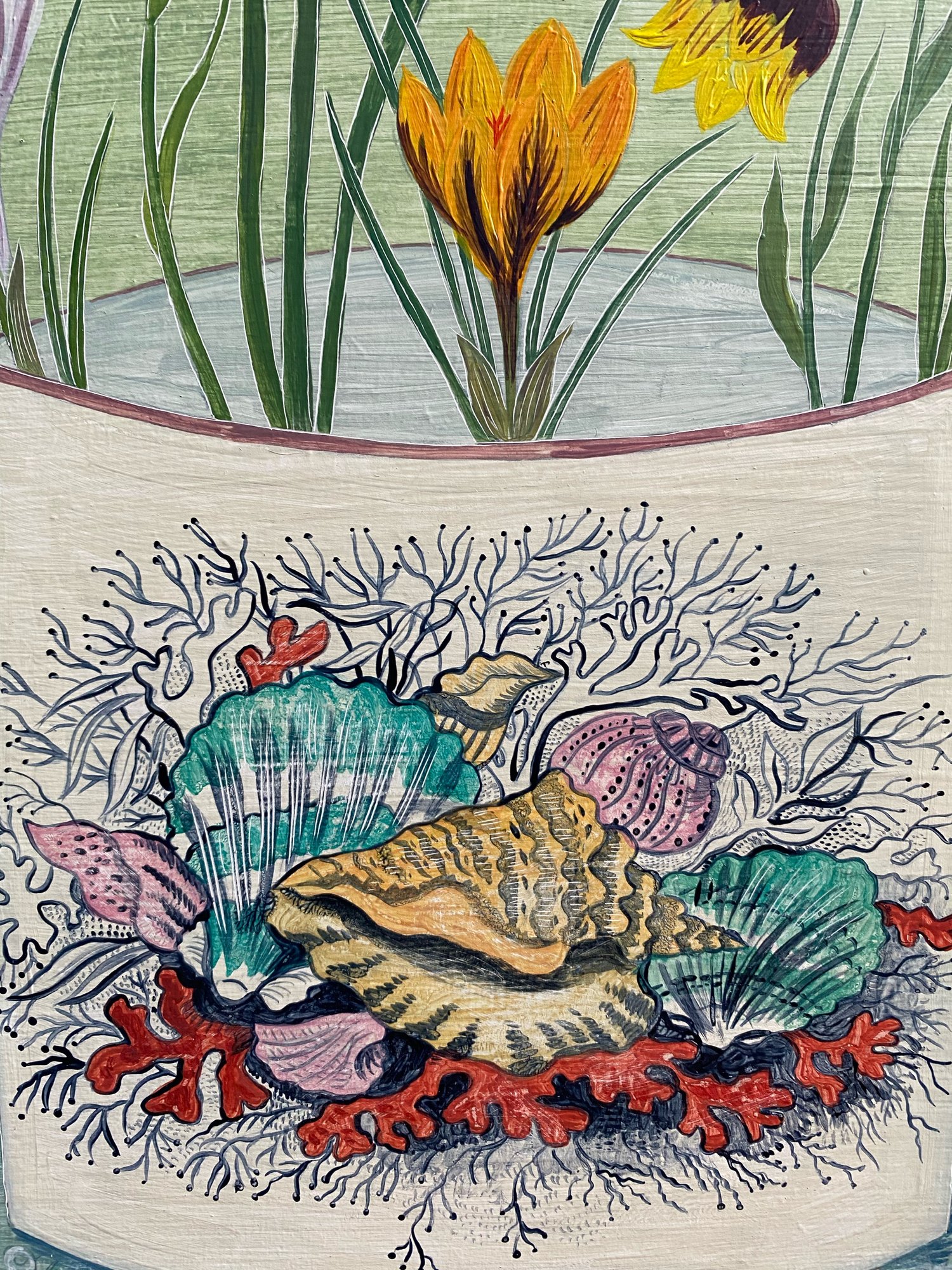 A new painting on gessoed board, inspired by an antique transferware jug with a beautiful shell design.