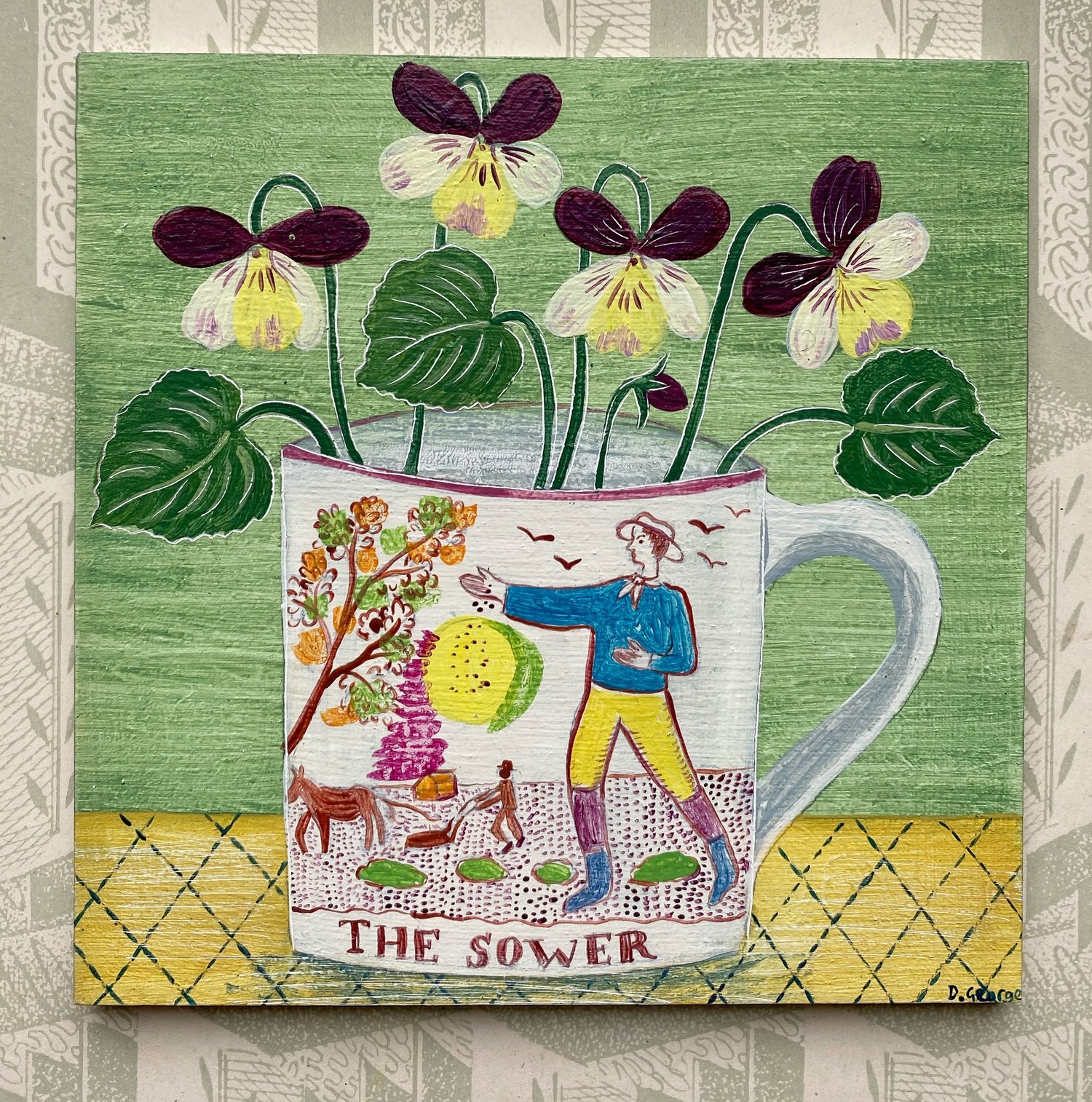 A new miniature painting on gessoed board, inspired by an antique child's cup.