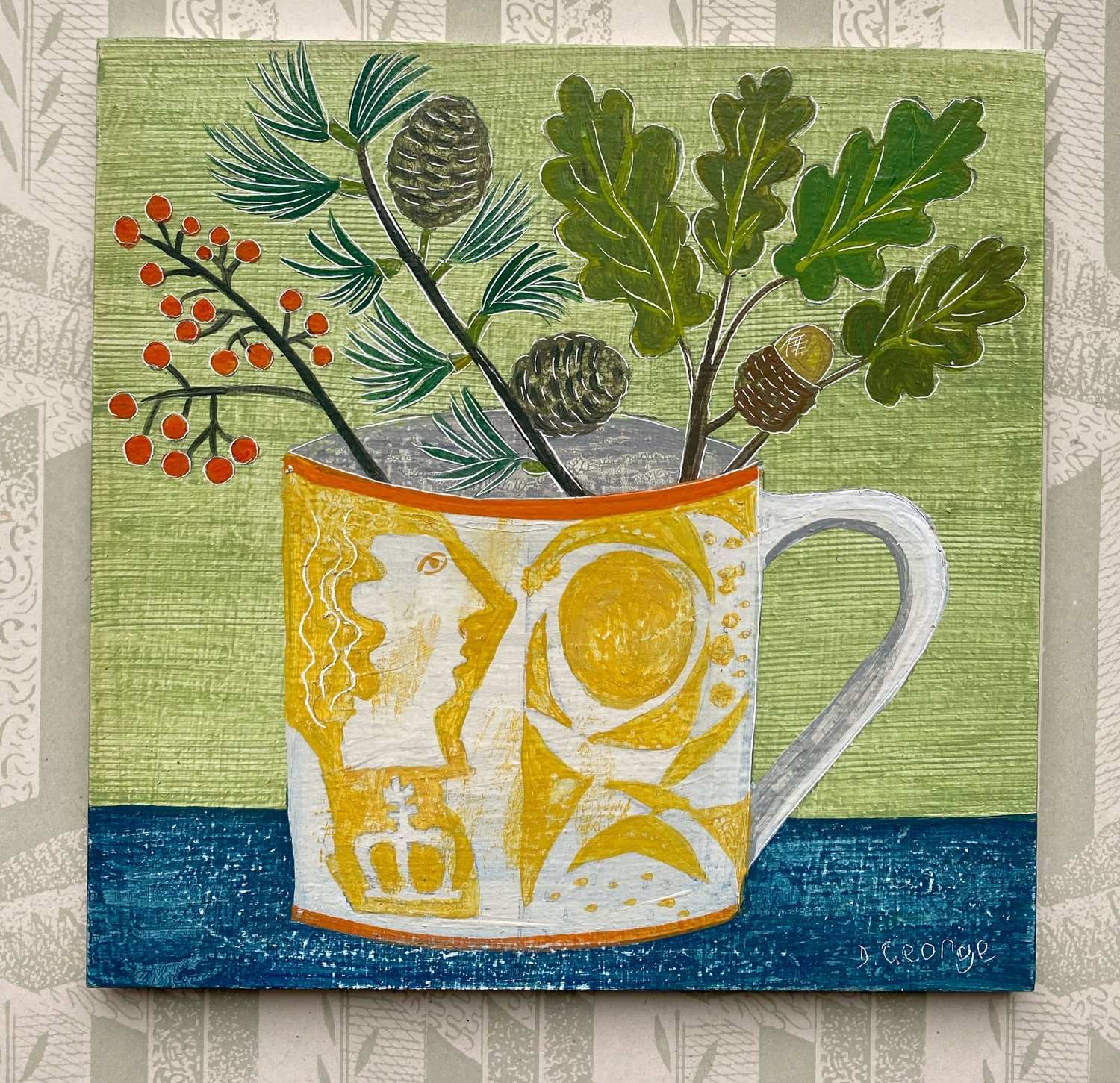 Yellow Ben cup and oak leaves